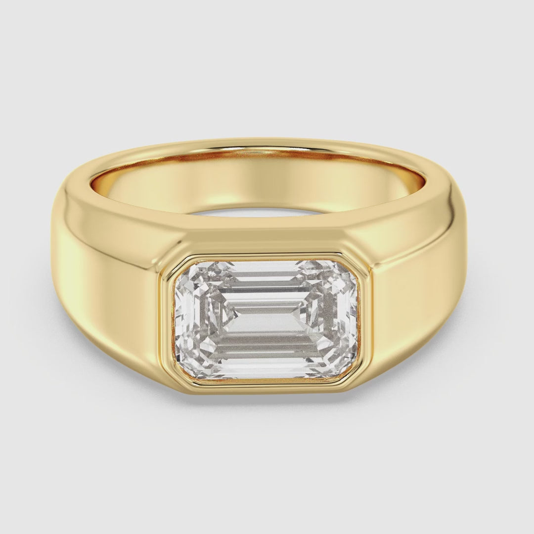 3 CT Emerald-Cut Lab-Grown Diamond Men's Bezel Set Engagement Ring